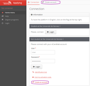 In the box "I am not a student at the University of Rennes", click on the button "Create an account".