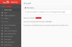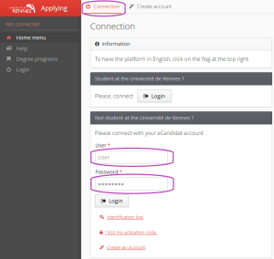 Once the account has been validated, you can log in to your Applying space (homepage) using the credentials sent in the confirmation e-mail.
